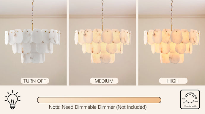 Crafted from natural alabaster stone, this fixture delivers a warm, softly diffused glow with fully dimmable lighting. Please note that a compatible wall dimmer is required and should be prepared by the customer. The inherent translucence and organic veining of alabaster create an elegant atmosphere that adjusts effortlessly to your preferred brightness.