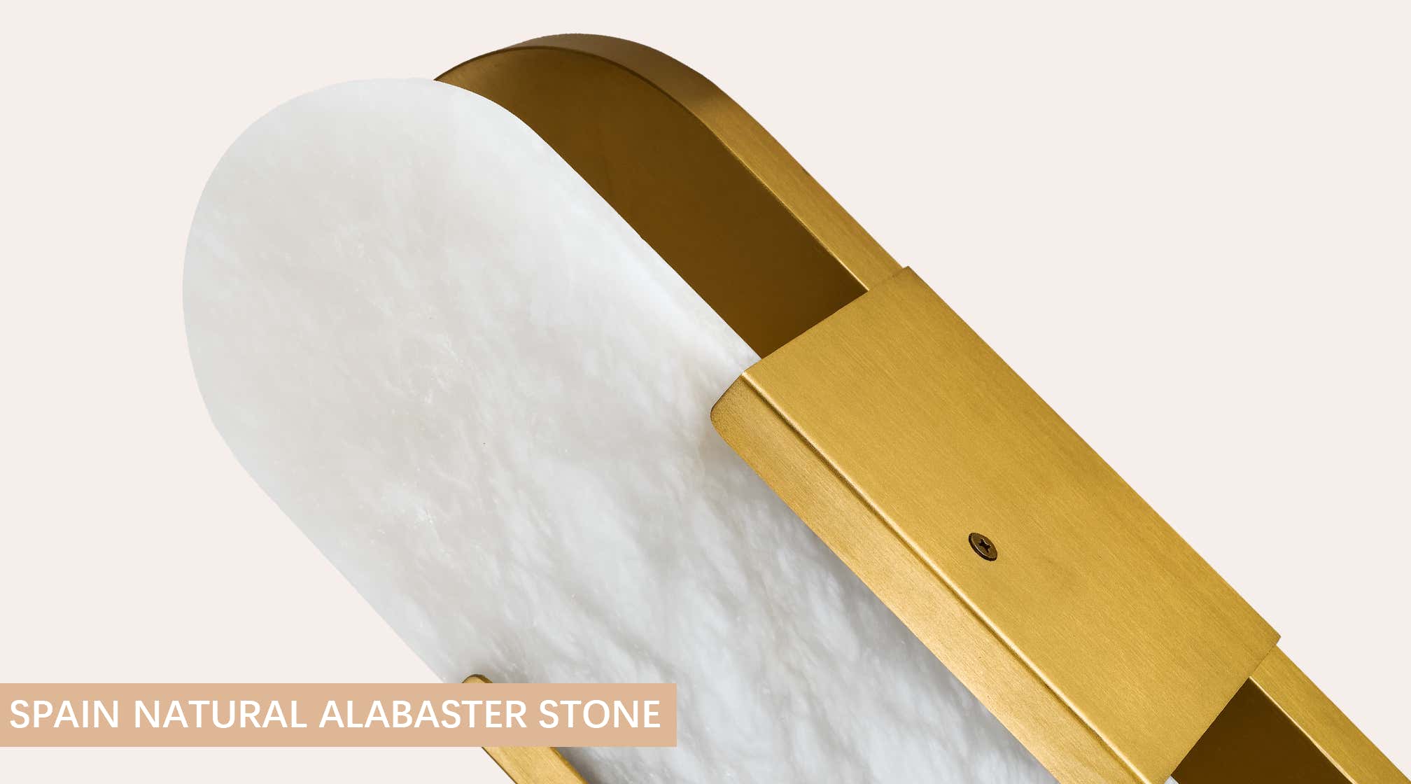 Crafted from luxurious alabaster, this pair of wall sconces brings a modern, sculptural touch to any room. The cylindrical marble shades softly diffuse ambient light through their natural veining, creating an elegant glow ideal for living rooms, bedrooms, hallways, or staircases. Each piece is unique, thanks to the inherent variations in the alabaster.