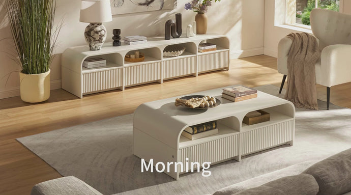 This furniture features a classic arched stripe design with white matte laminate for a clean, layered look. Its matte finish adds warmth and easy care, while sturdy 18mm construction ensures durability. Blending vintage and modern styles, it enhances any space with beauty, practicality, and lasting quality.