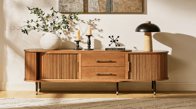 Ewan Oak Extendable Media Console 78.74" to 110.24"