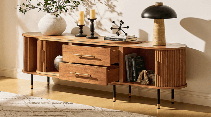 This design adopts a medieval aesthetic style, featuring sliding doors and movable components, seamlessly blending classical elegance with practical functionality. The rich wooden tones and textured surfaces evoke the aesthetic of medieval design, offering a practical storage and extension solution that adds a touch of retro elegance to modern interior spaces.