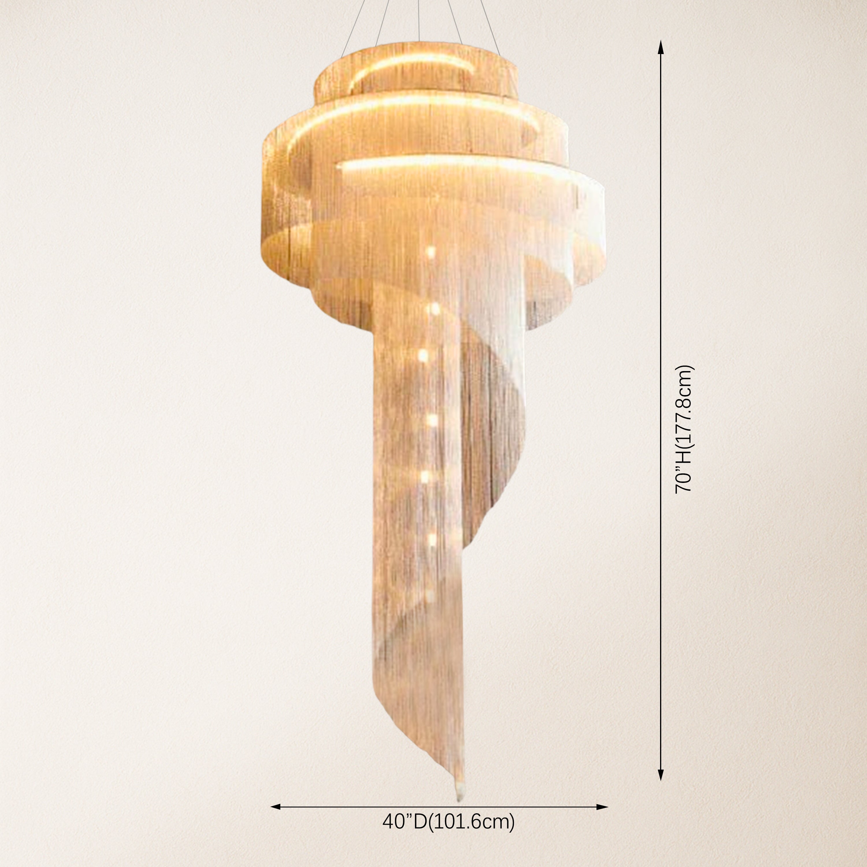 A sculptural play of form and texture, the Cadena Metal Chain Tassel Chandelier transforms light into movement. Crafted from stainless steel and cascading aluminum chains, this statement piece radiates contemporary elegance with a touch of glamour. Its electroplated finish and adjustable suspension height make it ideal for grand foyers, dining spaces, or any room seeking dramatic sophistication. Integrated LED bulbs and strip lighting deliver a warm, energy-efficient glow that enhances every reflection.