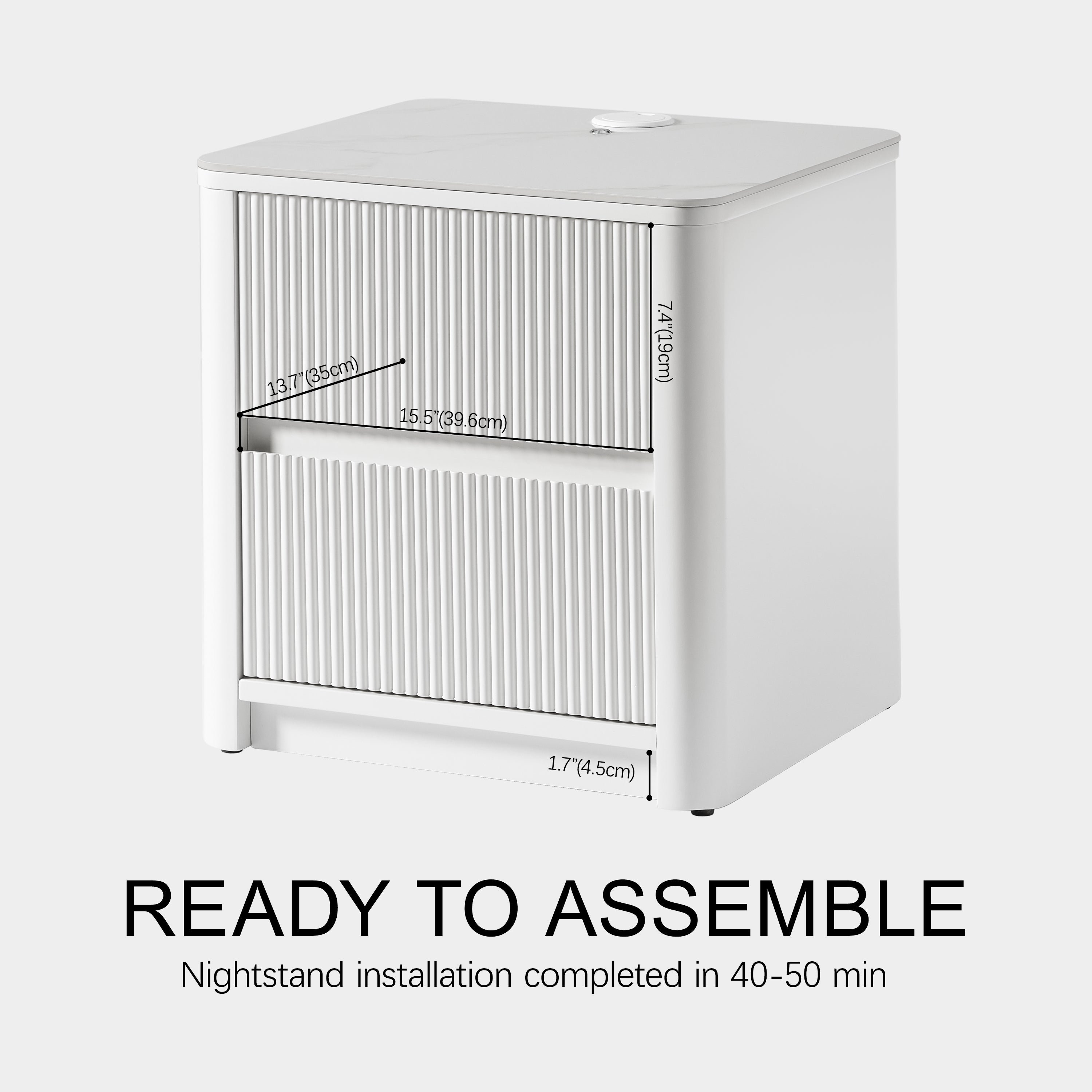 The Celia Oak Nightstand 20" blends modern aesthetics with smart functionality and premium materials. Featuring a Snow Mountain sintered stone top and solid pine base, it brings together natural elegance and long-lasting durability. The built-in adjustable LED lighting softly illuminates your space, adding both warmth and convenience to your nighttime routine.
