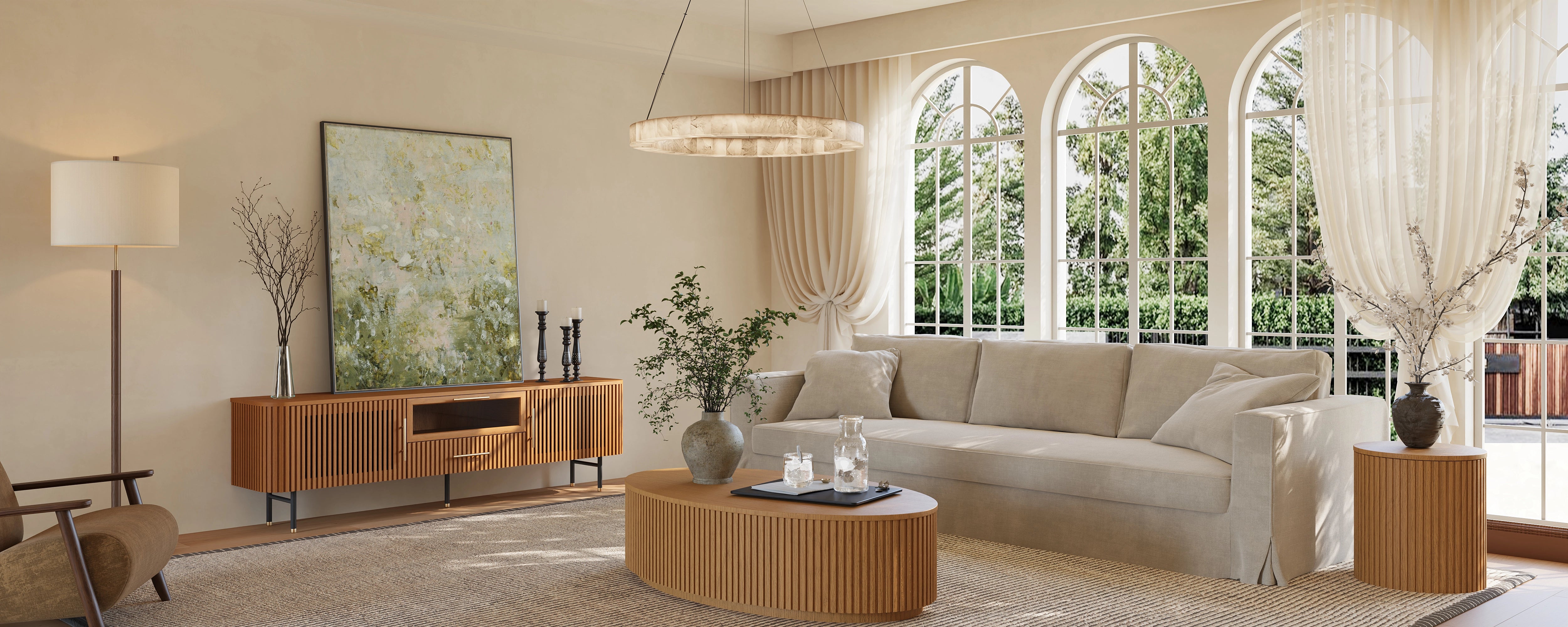 Alvar Arched 94.5″ Oak Media Console(Set of 3)