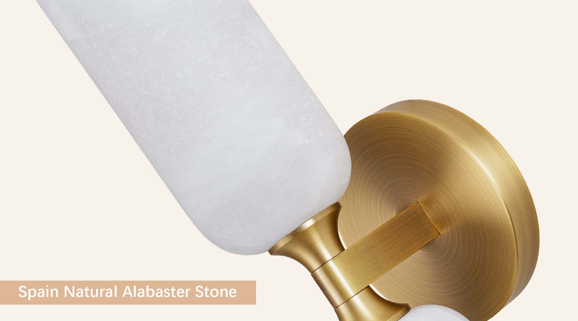This image highlights the refined beauty of Spain-sourced natural alabaster, renowned for its soft translucence and cloud-like veining. Each stone panel displays unique patterns formed over thousands of years, allowing light to pass through with a warm, diffused glow. The material’s natural variations make every fixture one-of-a-kind, adding depth, elegance, and artisanal character to the design.