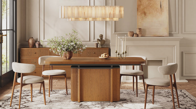 Designed with everyday life in mind, the expansive tabletop features softly rounded corners rather than sharp edges. This thoughtful detail creates a safer environment for busy households and allows for a smoother, more comfortable flow around the table.