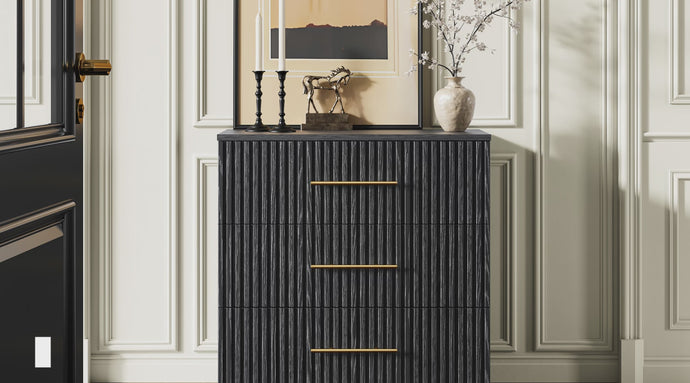 These sleek, elongated drawers can be freely combined—use one, two, three, or four to create the configuration that fits your home perfectly. Ideal for the entryway, bedroom, dining room, or living room, and available in two refined colors: Black and Honey.