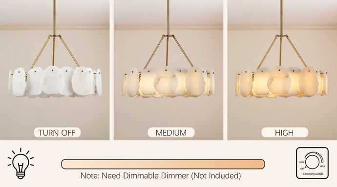 Crafted from natural alabaster stone, this fixture delivers a warm, softly diffused glow with fully dimmable lighting. Please note that a compatible wall dimmer is required and should be prepared by the customer. The inherent translucence and organic veining of alabaster create an elegant atmosphere that adjusts effortlessly to your preferred brightness.