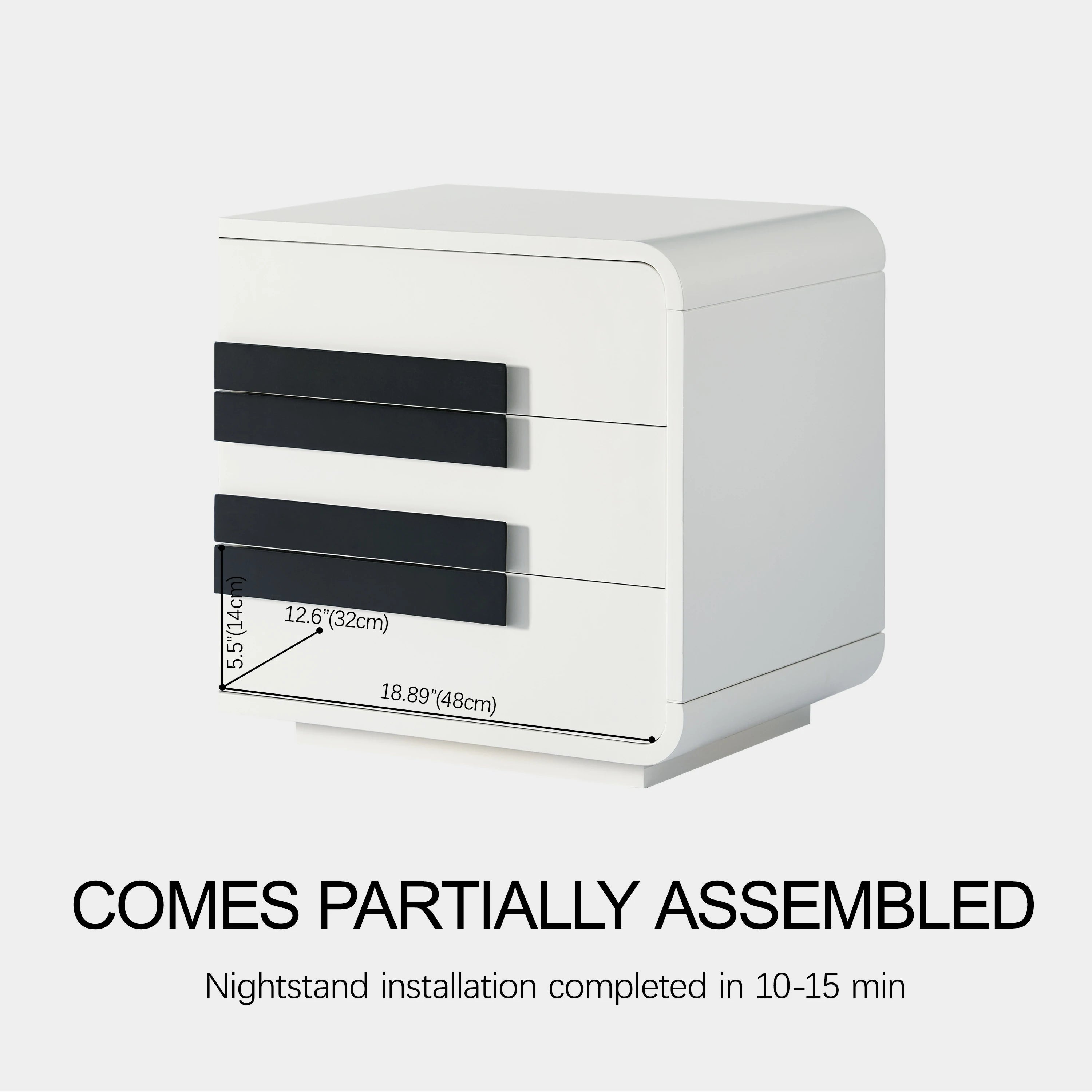 The base of the nightstand features a 3000K tri-color LED light strip that creates a soft, welcoming glow. Controlled with a touch switch, the lighting allows you to switch between warm, neutral, and cool tones depending on your mood or activity. Perfect for late-night reading, creating a cozy atmosphere, or simply acting as a subtle night light that enhances the elegance of your bedroom.