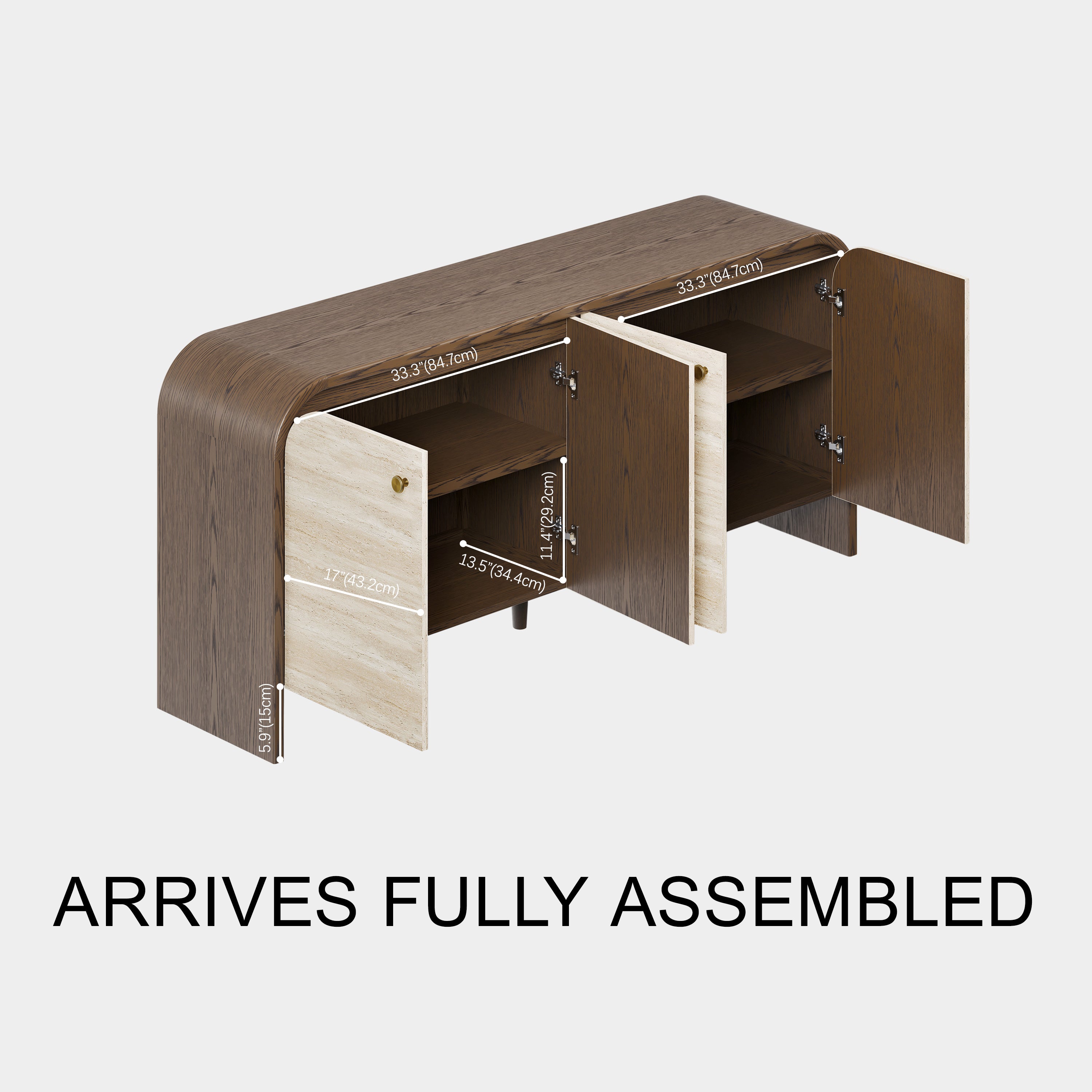 - Generous concealed storage featuring a four-door design that opens to reveal spacious interior shelving, perfect for organizing dinnerware, linens, or daily essentials.